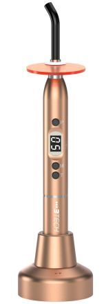 Polymerační lampa o výkonu 1100 mW/cm2 a vlnovou délkou 430 - 485 nm. Časy: 10s, 20s, 30s, 40s. 3 módy: soft-start, blikanie, plný výkon.