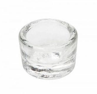 Skleněná nádobka na amalgám. Průměr: 4,5 cm.