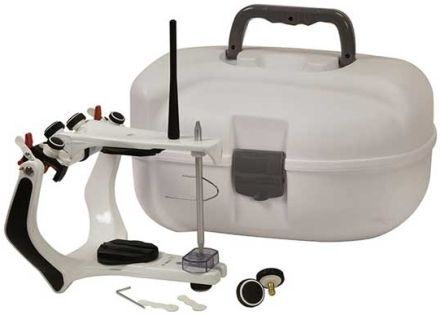 Seminastavitelný artikulátor. Regulace kondylárního vedení, regulace Bennetova úhlu. Pevná kondylární vzdálenost. Systém stabilizace. Opěrný čep horní čelisti v otevřené poloze.