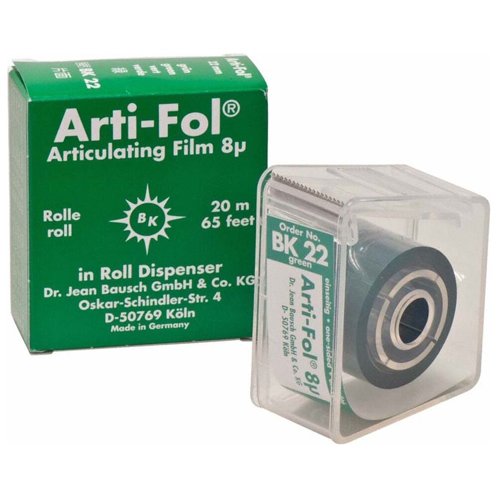 Fólie 8µ na kontrolu okluzálního úseku. V zásobníku, jednostranná, 22 mm široká, zelená. Balení 20 m.
