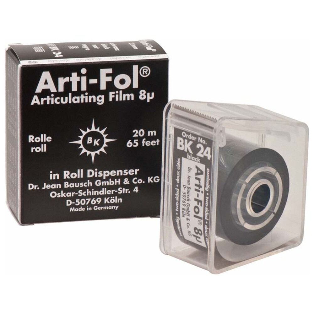 Fólie 8µ na kontrolu okluzálního úseku. V zásobníku, oboustranná, 22 mm široká, černá. Balení 20 m.