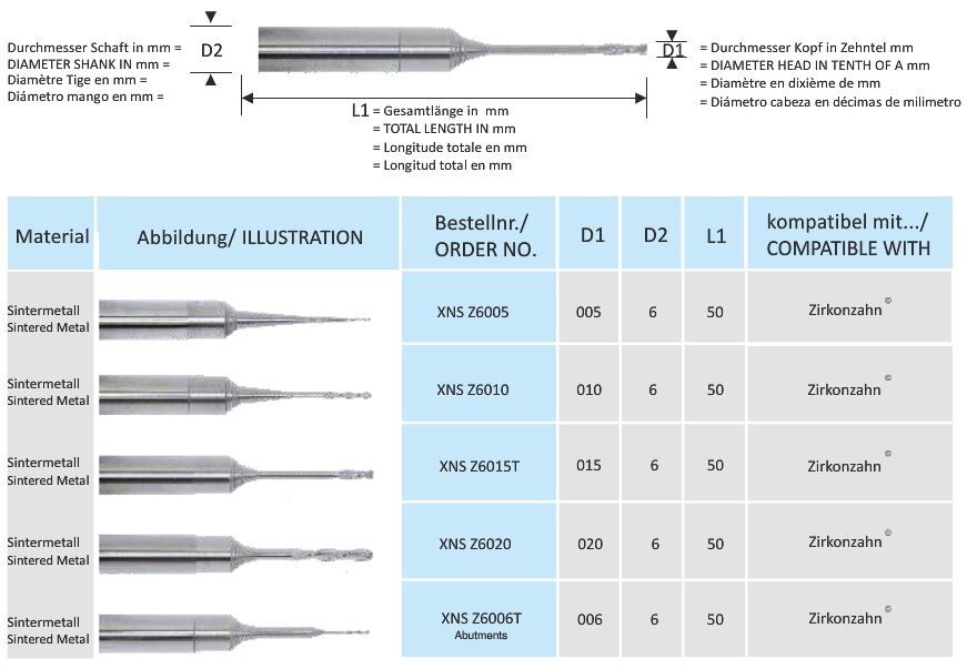 CAD-CAM Zirkonzahn fréza XNS Z6010 Sintermetal Bur