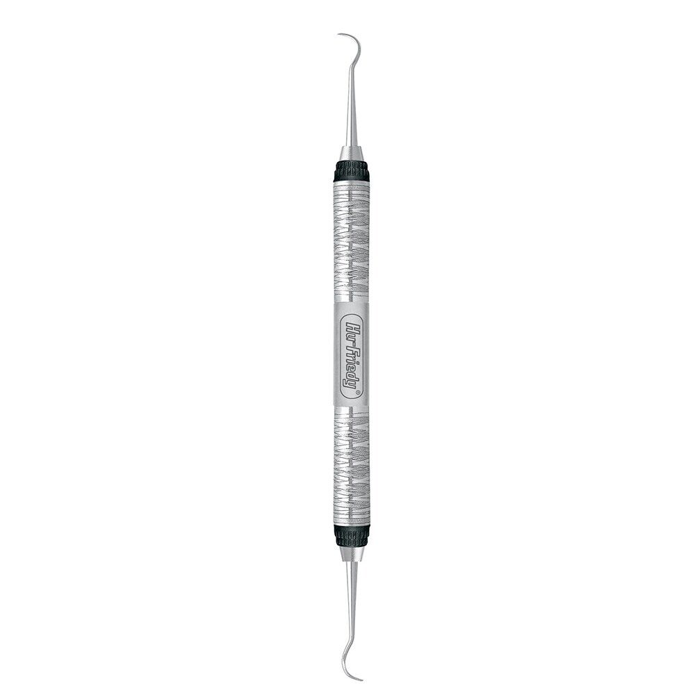 Hu-Friedy nástroj na modelování amalgámových výplní s extrémně tenkou zahnutou čepelkou, ideální adaptace na interproximální plošky.