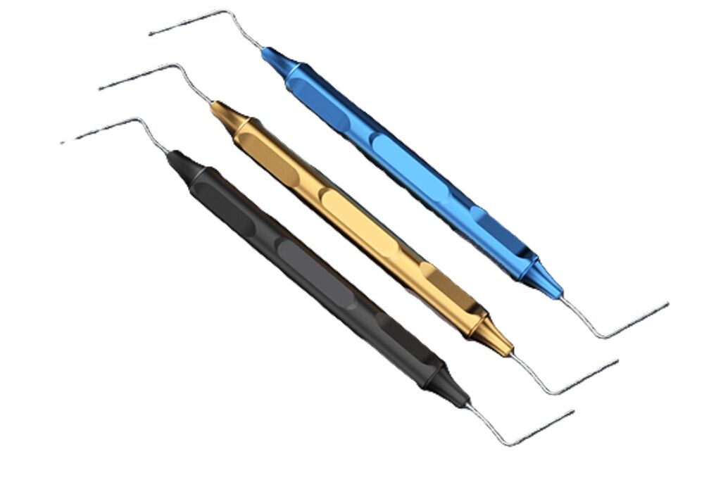 Dentální plugger zlatý. Inovativní koncepce, jedinečný design. Silná odolnosti proti oxidaci, účinně brání proti přeplnění kořenového kanálku. Balení: 1 ks
