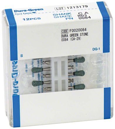 Brusný kámen z karbidu křemíku s keramickým pojivem. Vhodný na kompozita, keramiku, vzácné kovy a amalgám. Vysoká přesnost, nízké vibrace, dlouhá životnost. Otáčky 5-20 000/min, max. 30 000/min. Balení 12 ks.