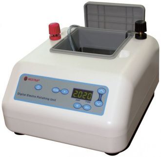 Kompaktní elektrolytická leštička. Možnost nastavit čas a maximální proud. Dva přednastavené programy. Včetně míchání pomocí vzduchu.