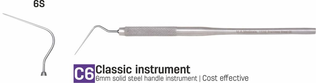Endodontický rozšiřovač s rukojetí z nerezové oceli C6.