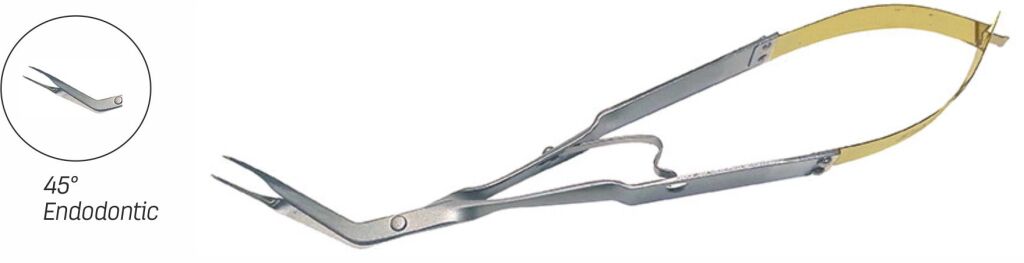 Endodontické kleště se 45 stupňovým úhlem.