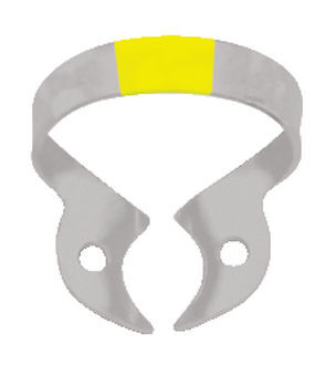 Kvalitní nerezové spony bez křidélek, barevně kódované - dolní moláry, všeobecné použití.