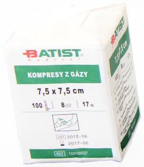 Nesterilní vysokosavé gázové čtverečky ze 100% bavlny. 8 vrstev. Balení 100 ks.