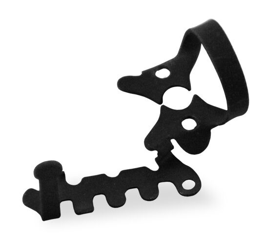 Hallerova spona - 2AUL, černá. Vhodná pro adhezivní techniky, usnadňuje optické Cerec otisky, dokonalejší práce bez asistence = udržuje suché operační pole. Retrakce jazyka a tváře, fixace roliček, savek, retrakce gingivy. Doporučujeme zajistit spony vždy zubní nití. Jednostranná, LEVÁ.