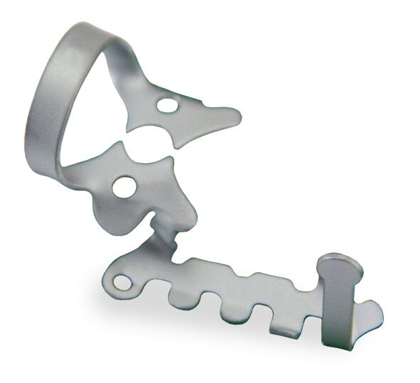 Hallerova spona - 2AUR, stříbrná. Vhodná pro adhezivní techniky, usnadňuje optické Cerec otisky, dokonalejší práce bez asistence = udržuje suché operační pole. Retrakce jazyka a tváře, fixace roliček, savek, retrakce gingivy. Doporučujeme zajistit spony vždy zubní nití. Jednostranná, PRAVÁ.
