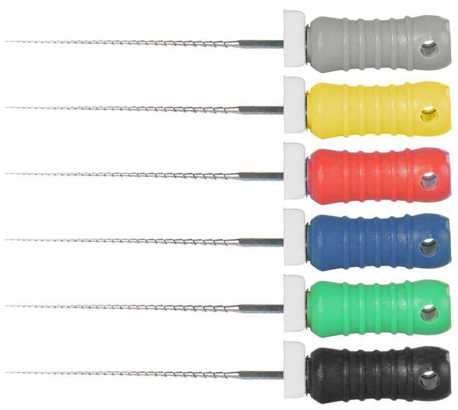 Ruční kořenové nástroje, barevně kódované. Sterilně baleno v blistrech. Bal. 6 ks