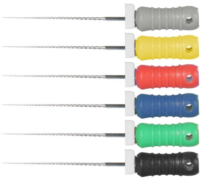 Ruční kořenové nástroje, barevně kódované. Sterilně baleno v blistrech. Bal. 6 ks