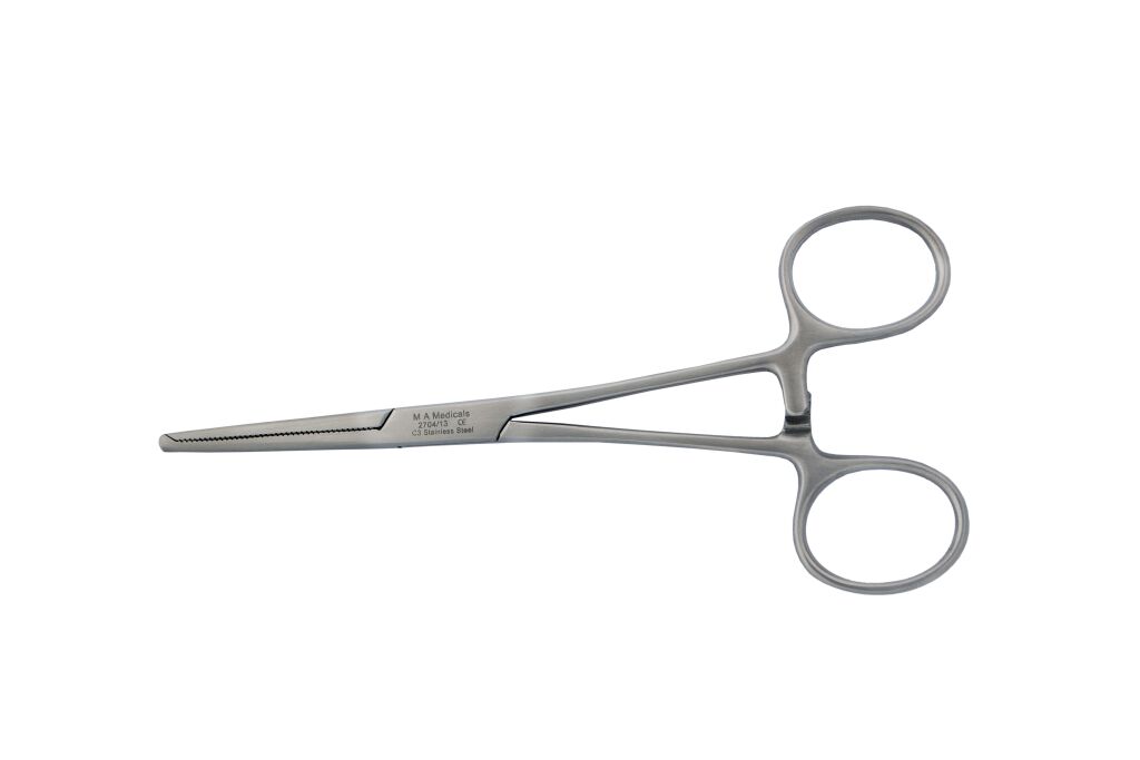 Multifunkční dentální nástroj např. pro uchycení volných předmětů nebo podchycení krevních cév. Délka 13 cm, rovný.