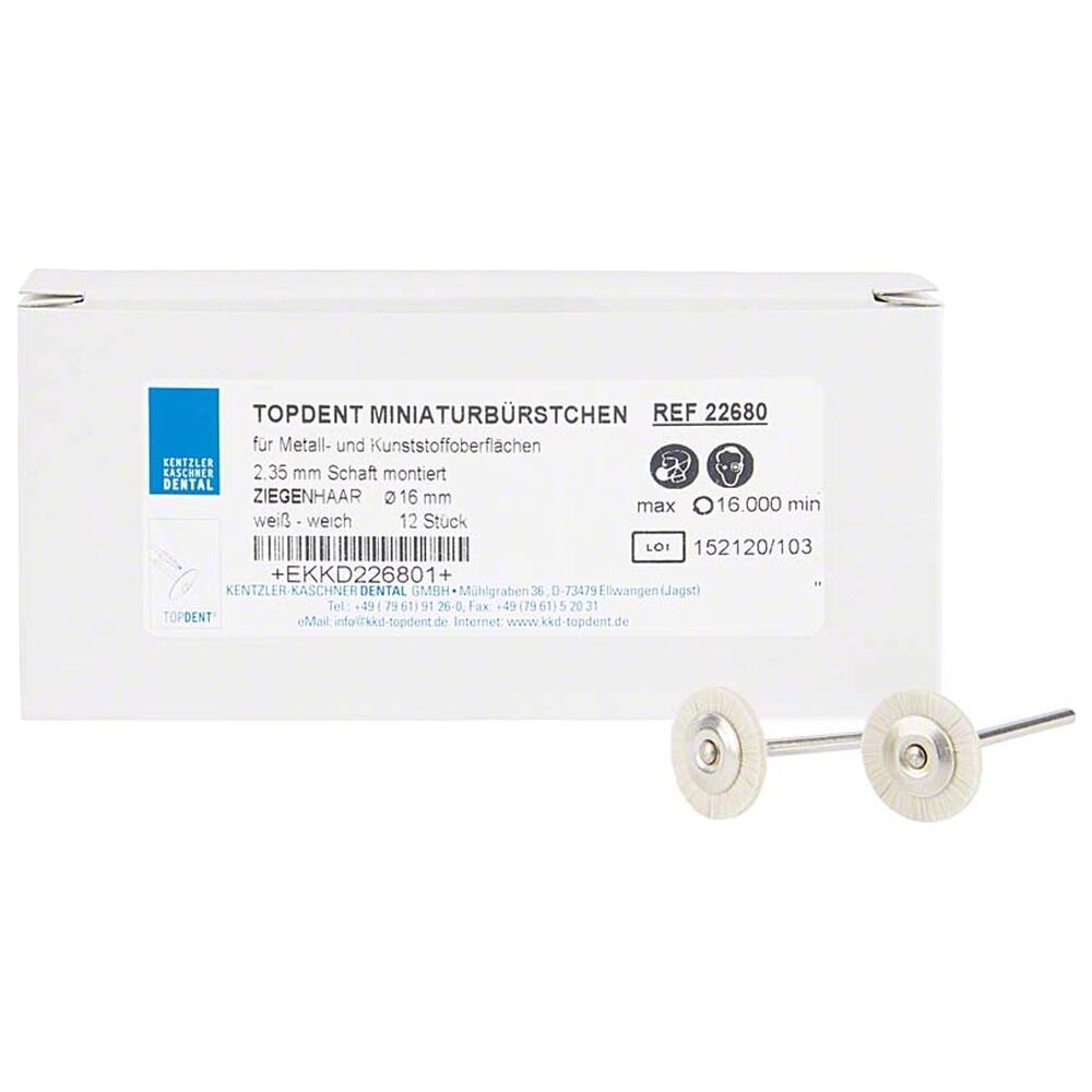 Miniaturní kartáčky z kozích chlupů. Vhodé pro leštění kovu nebo pryskyřičných povrchů. Balení 12 ks.