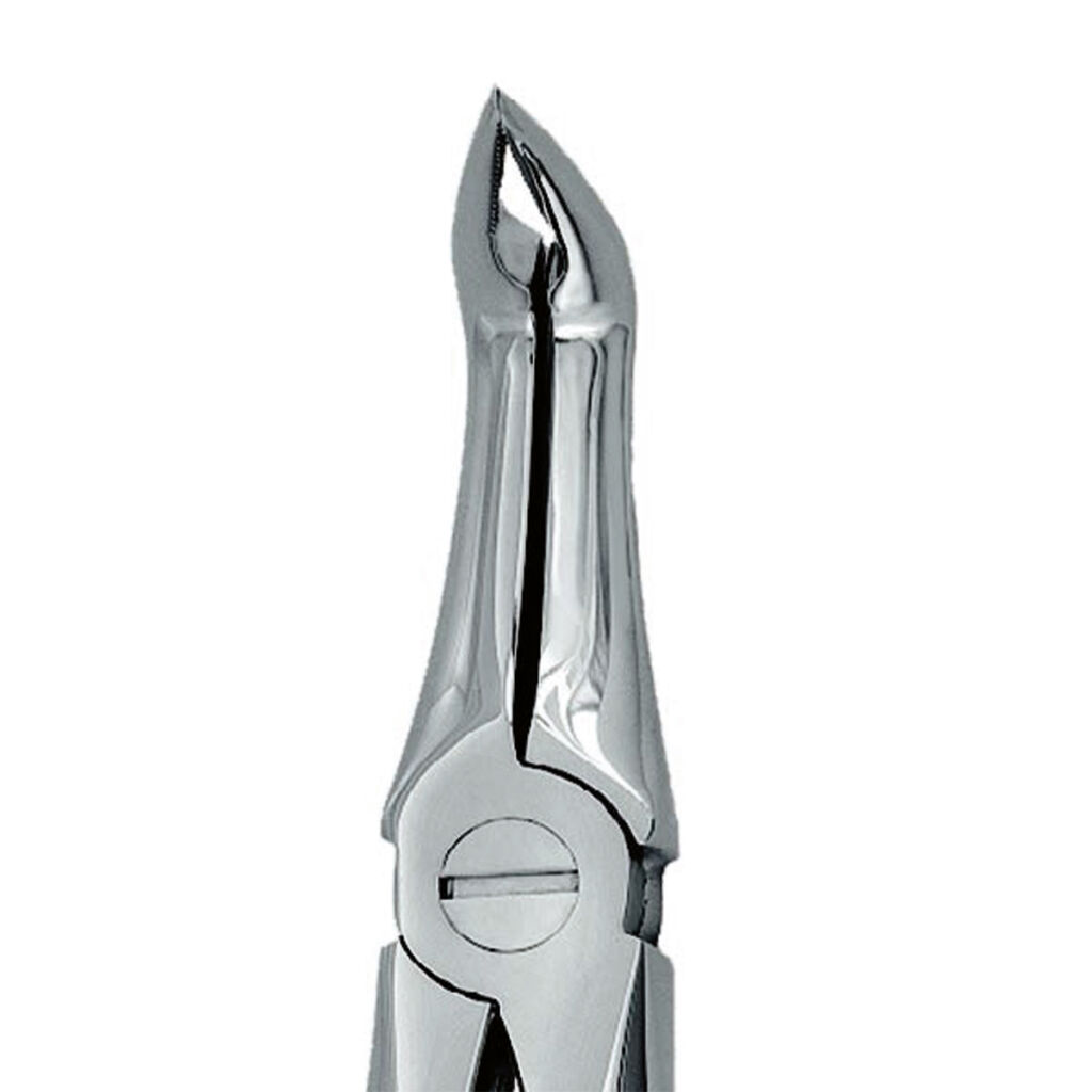 úzké pracovní hroty s plochým zakončením, pro subgingivální použití - extrakční kleště s hlubokým úchopem 46 a 49 jsou vhodné zejména pro extrakci zlomených kořenů a zbytků kořenů! Díky úzkému krčku kleští jsou nejvhodnější pro těžko přístupná místa.