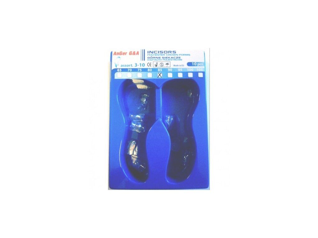 Polyesterové korunky na přední zuby - horní. Balení 10 ks (5 ks na levou stranu, 5 ks na pravou stranu).