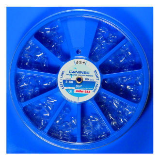 Polyesterové transparentní korunky na oční zuby. Balení 80 ks.