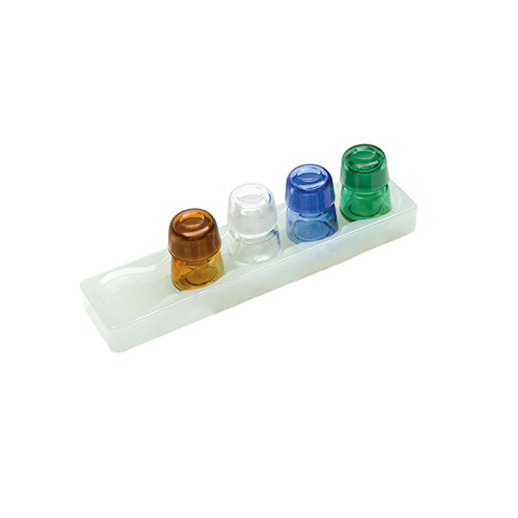 Skleněné lahvičky s víčkem na přehladné, úsporné a hygienické dávkování tekutých léčiv. Barvy: hnědá, hnědožlutá, modrá, zelená, šedá, čirá.