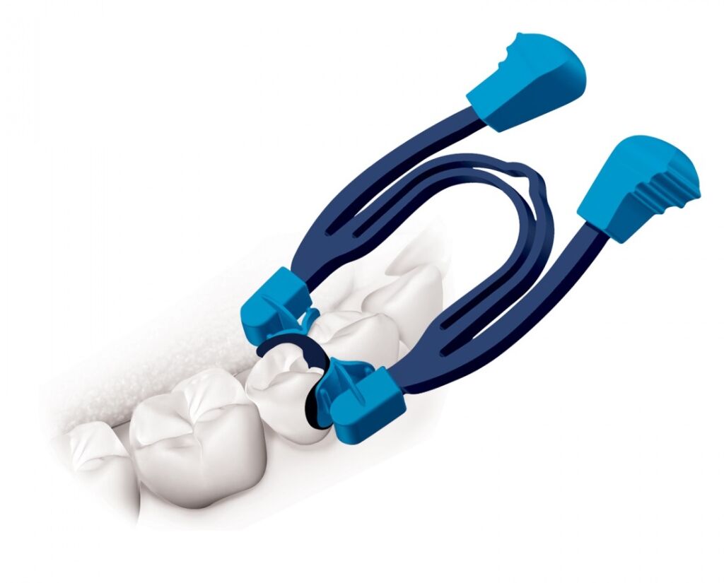 Kroužek pro sekční matrice s integrovanými kleštěmi. Ovládání jednou rukou , optimální roztažná síla, autoklávovatelné, anatomický tvar pro dokonalé přizpůsobení matrice, prémiová kvalita nerezové oceli. Balení 2 ks.
