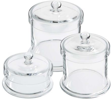 Autoklávovatelná, tepluvzdorná nádoba se skleněným víčkem na vatové produkty. Průměr 100 mm, výška 100 mm.