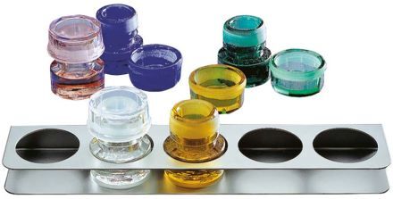 Nerezový stojan na lahvičky. Rozměr 198 x 44 x 17 mm.