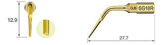 Koncovka na přístroj Variosurg k extrakci. Potah z titan-nitridu. Hrot zkosený doprava.