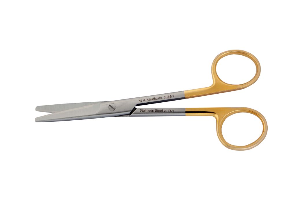 Nůžky na šití, řezání stehů a úpravu tkáně. Ostré čepely z karbidu (TC). Délka 14 cm.
