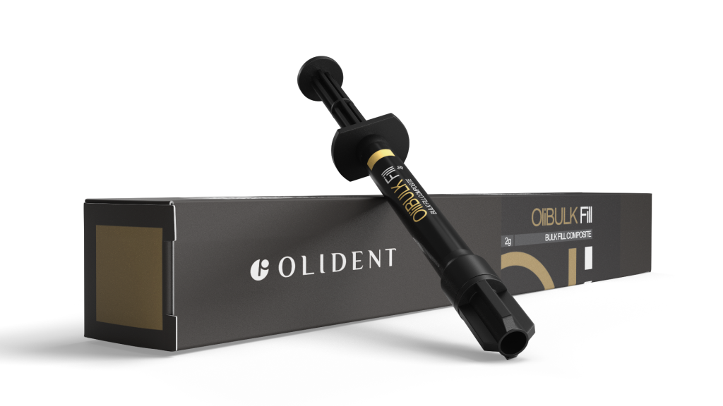 OliBulk Fill je světlem tuhnoucí, zatékavý, vysoce rentgenkontrastní (210% Al) kompozit určený pro přímou rekonstrukci v postranním úseku technikou Bulk-Fill.