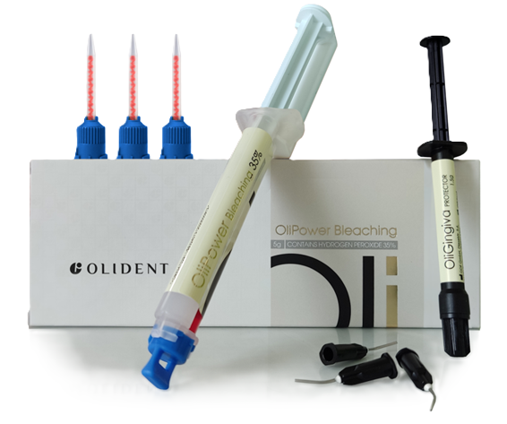 OliPower Bleaching je bělicí gel určený pro lékařské postupy v dentální praxi. OliPower Bleaching se používá k zesvětlení jednoho nebo více zubů a také pro mrtvé zuby, včetně zubů po endodontických postupech. OliPower Bleaching obsahuje bělicí gel a aktivátor v automaticky míchající stříkačce se dvěma komorami ve poměru 4:1. Dvojkomorová stříkačka obsahuje 5 g materiálu. Obsah peroxidu vodíku u ve finální směsi je 35 %. Indikace: zesvětlení zabarvených, mrtvých zubů. Zesvětlení zubů zabarvených v důsledku nemoci, poranění nebo iatrogenních příčin, jako alternativa k zubním korunkám nebo faset. Ošetření v případě zabarvení způsobeného užíváním léků (např. tetracyklin). Balení: 5g stříkačka 4:1 + 1,5g bariéra + 3x míchací špičky