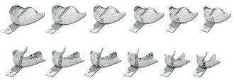 Nerezové perforované otiskovací lžíce vynikající kvality. Svařování rukojeti laserem. Neřezné hrany. Sterilizovatelná v autoklávu (180°C). Balení 6 ks dolních, 6 ks horních (z každé velikosti po 1 ks).