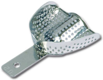 Nerezová perforovaná otiskovací lžíce vynikající kvality. Svařování rukojeti laserem. Neřezné hrany. Sterilizovatelná v autoklávu (180°C). Horní U2: Rozměry (mm) 64x51. Balení: 1ks