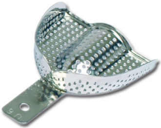 Nerezová perforovaná otiskovací lžíce vynikající kvality. Svařování rukojeti laserem. Neřezné hrany. Sterilizovatelná v autoklávu (180°C). Horní U6: Rozměry (mm) 73x62. Balení: 1ks