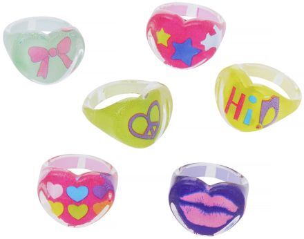 Barevné prstýnky s různými motivy. Balení 100 ks.