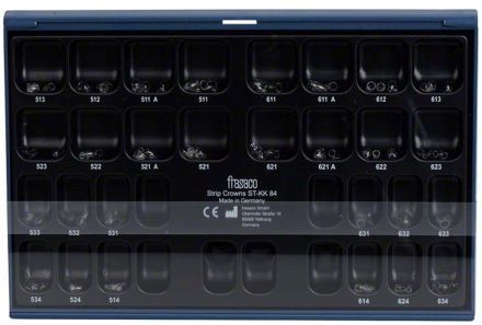 Prefabrikované, transparentní pediatrické korunky. Tenké, elastické, snadno upravitelné, naprosto transparentní kvůli polymeraci. Slouží jako tvarovače, pro dočasné rekonstrukce, pro ochranu velkých výplní a jako matrice pro vytvoření rohů a hran. Většinou se používají s dočasnými výplňovými materiály. Balení 84 ks.