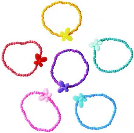 Perličkové barevné náramky na ruku s motýlky. Balení 48 ks.