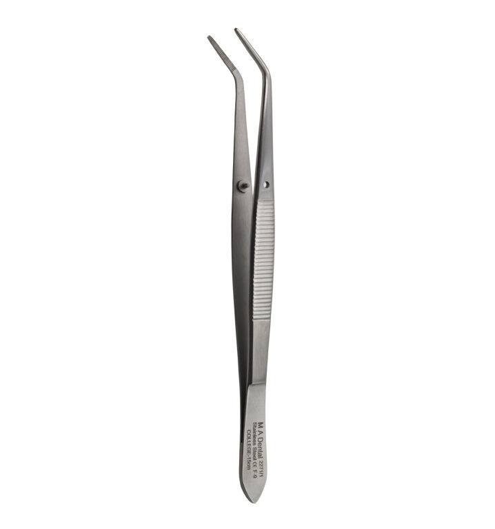 Pinzeta College pro přenos a umístění vatových válečků mezi dásní a lícem. Délka 15 cm.