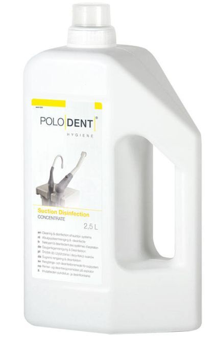 Dezinfekční koncentrát pro denní čištění a dezinfekci sacích systémů. Ředění 2%. Efektivní spektrum: baktericidní včetně Salmonella typhimurium a Legionella pneumophila (15 min), kvasinky (15 min), virucidní (15 min - HBV, HCV, HIV), tuberkulocidní (60 min), fungicidní (30 min). Bal. 2,5 L