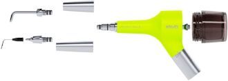 Profesionální přenosná pískovačka na rychlospojku Kavo ve 3 různých barvách. Skvělá ergonomie pro menší únavu ruky. Precizní a jemné čištění biofilmu a diskolorácií. Upravená tryska pro lepší zacílení a menší rozptyl prachu. Možnost dokoupit subgingivální trysku.
