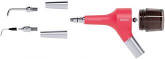 Profesionální přenosná pískovačka na rychlospojku Kavo ve 3 různých barvách. Skvělá ergonomie pro menší únavu ruky. Precizní a jemné čištění biofilmu a diskolorácií. Upravená tryska pro lepší zacílení a menší rozptyl prachu. Možnost dokoupit subgingivální trysku.