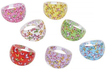 Barevné prstýnky s motivem motýlů. Balení 100 ks.