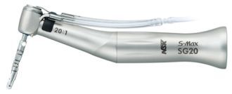 Implantologické kolénko s redukcí 20:1. Tlačítková hlavička, tělo z ušlechtilé oceli, externí i interní chlazení.