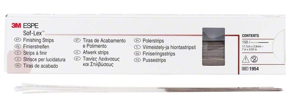 Brusné pásky potáhnuté hrubými a středními zrny oxidu hlinitého. Lehké interproximální zasunutí. Balení 150 ks.