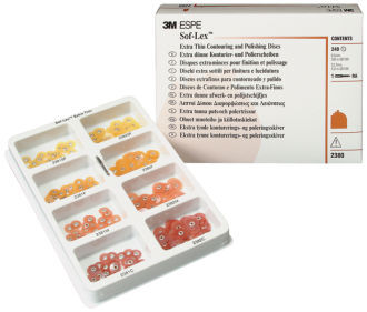 Sof-Lex leštící disky jsou flexibilní disky, které se přizpůsobují konturám zubů. Sof-Lex disky jsou přehledně barevně značené podle hrubosti zrna od tmavé barvy (hrubá zrnitost) po světlou barvu (jemná zrnitost) pro rychlou identifikaci během pracovního procesu. Balení 30 x 8692C, 30 x 8692M, 30 x 8692F, 30 x 8692SF, 30 x 8693C, 30 x 8693M, 30 x 8693F, 30 x 8693SF, 1 x mandrel.