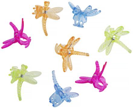 Barevné sponky do vlasů ve tvaru vážky 3,5 cm. Balení 100 ks.