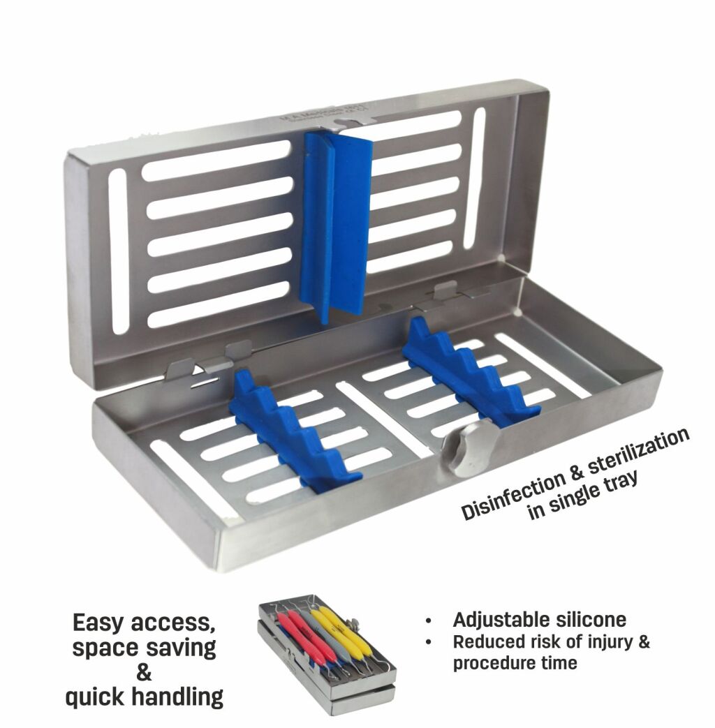 Sterilizační kazeta pro 5 ks nástrojů s odnímatelným víkem.