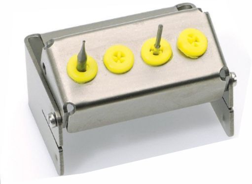 Stojánek na 4 vrtáčky. Barevně kódované silikonové držáky pro jednodušší organizování.