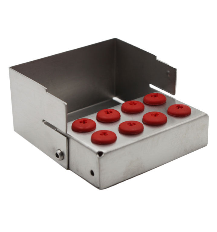 Stojánek na 8 vrtáčků. Barevně kódované silikonové držáky pro jednodušší organizování.