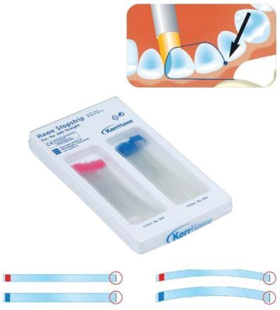 Polyesterová průhledná matrice pro frontální úsek ve formě pásky s integrovanou zarážkou. Jedna strana je samolepicí.